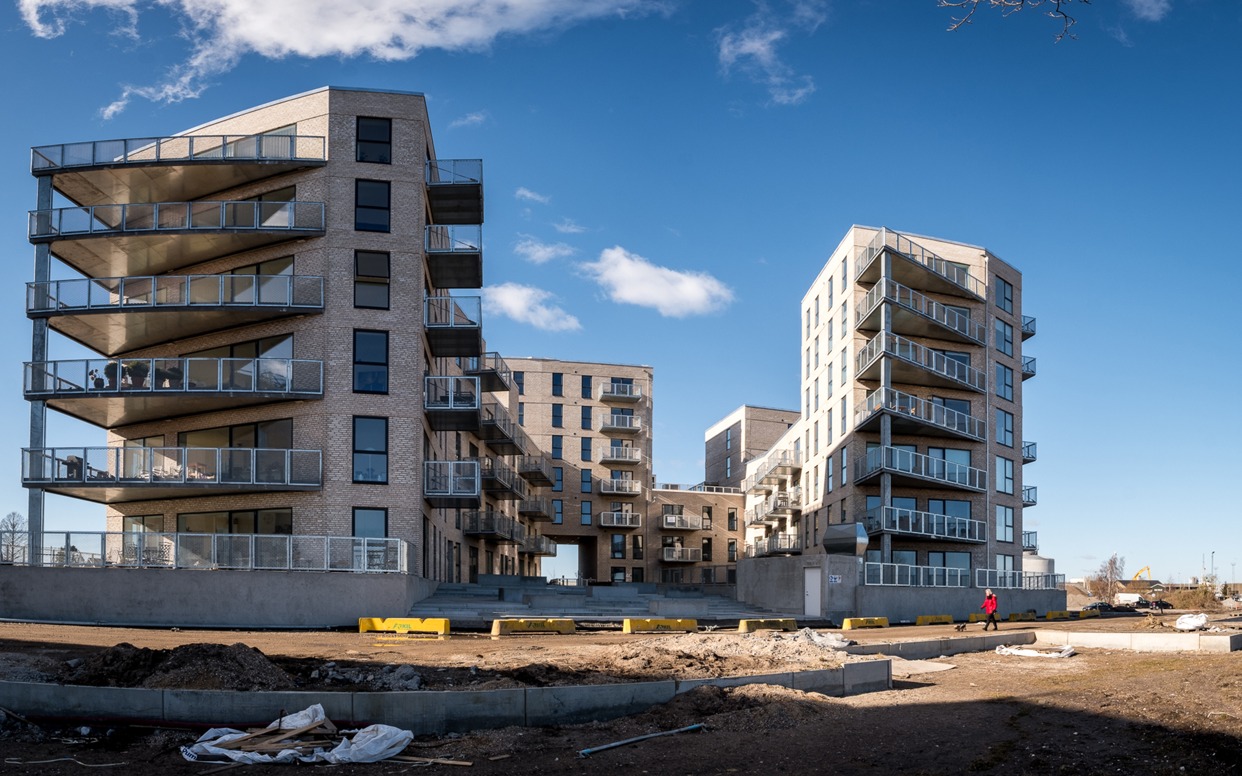 Byggeriets etagespring og de mange altaner bidrager med liv og sanselighed i facadens udtryk og giver mulighed for større udsigt og mere dagslysindfald.